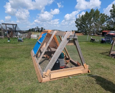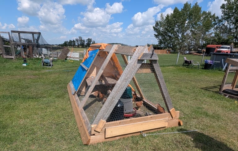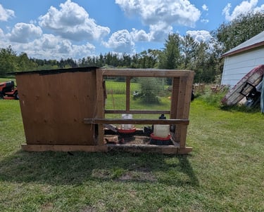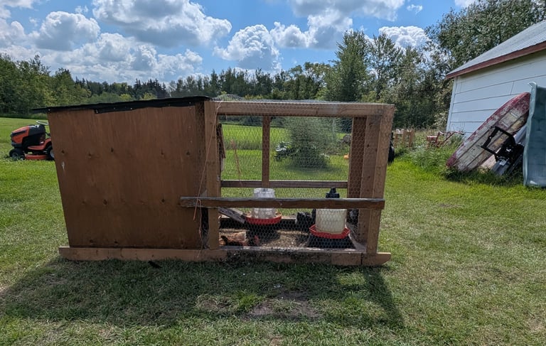 Easy to create, cozy for the chickens to sleep in. It is always important to have a netted safe area for the chickens to move around in and to keep predators.